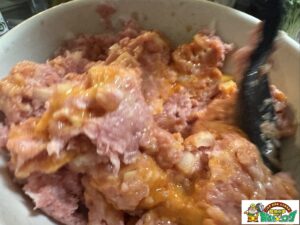 ひき肉に玉ねぎのみじん切り、そして卵を落としたら、双子卵🥚🥚。