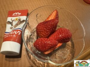 いちごにミルクをかけて、いちごを潰して食べて、最後に牛乳をそこに入れて飲む‼️