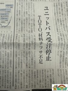 ユニットバスが受注停止と言う衝撃的なニュース。